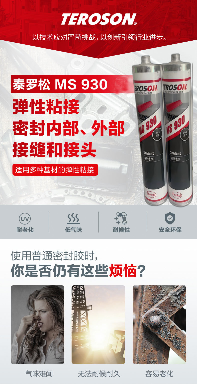 - 金屬與塑料粘接:泰羅松MS930在金屬與塑料的彈性粘結(jié)中表現(xiàn)出色,特別適用于面板、汽車頂篷等部件的粘結(jié)。