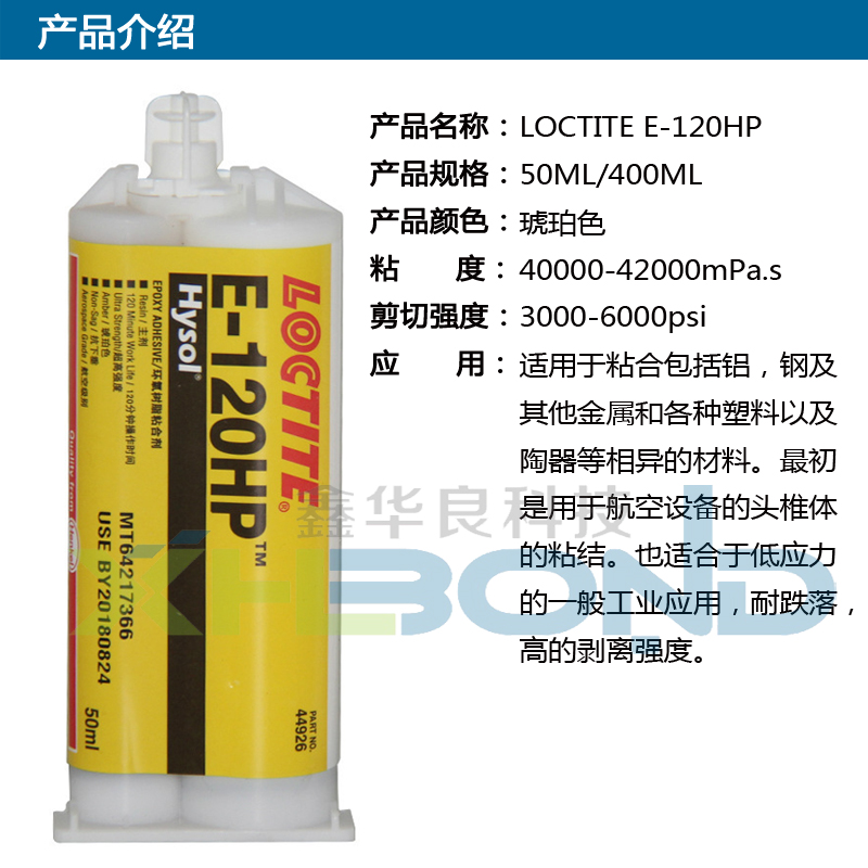 樂(lè)泰E-120HP膠水是一種高粘度,不下垂堅(jiān)韌的工業(yè)級(jí)環(huán)氧樹(shù)脂膠粘劑,具有延長(zhǎng)的使用壽命。一旦將兩組分混合,loctite e-120hp就會(huì)在室溫下固化成堅(jiān)韌琥珀色-米色,具有高的剝離強(qiáng)度和剪切強(qiáng)度的膠層。完全固化后,環(huán)氧樹(shù)脂具有優(yōu)異的耐熱沖擊性能,機(jī)械性能和電氣絕緣性能,并且可以耐大多數(shù)化學(xué)藥品和溶劑。