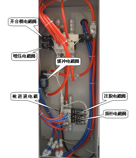 9)架好模具后點擊“頂桿”按鈕,檢查頂桿動作速度是否適當(dāng),若不適當(dāng)側(cè)調(diào)整頂桿電磁閥上的節(jié)流閥(順時針慢、逆時針快);